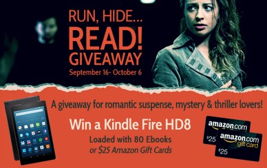 Grand prize includes ebooks by Janet Evanovich, Kendra Elliot, Melinda Leigh, Mary Burton, J.D. Robb, Gina Lamanna, and Loreth Anne White, and the list goes on and on, not to mention 30 page-turning reads donated by the talented authors sponsoring the giveaway. Two runner-up $25 Amazon gift cards are also up for grabs.